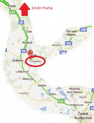 Naše autovrakoviště se nachází v jižních čechách v obci Číčenice, která leží na hlavním tahu mezi Pískem a Českými Budějovicemi poblíž města Vodňany. Na mapce vlevo je hrubý nástin cesty přesnější informace najdete v sekci Kde nás najdete. Mapka